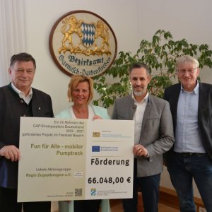 Nach erfolgreicher Beantragung der LEADER-Förderung für das Projekt "Fun auf Rädern für alle - mobiler Pumptrack Mittenwald" konnten wir nun den Zuwendungsbescheid offiziell übergeben. Der Markt Mittenwald kann mit der Umsetzung starten und wir wünschen dabei viel Erfolg. Ausführliche Informationen zum Projekt finden Sie hier.