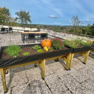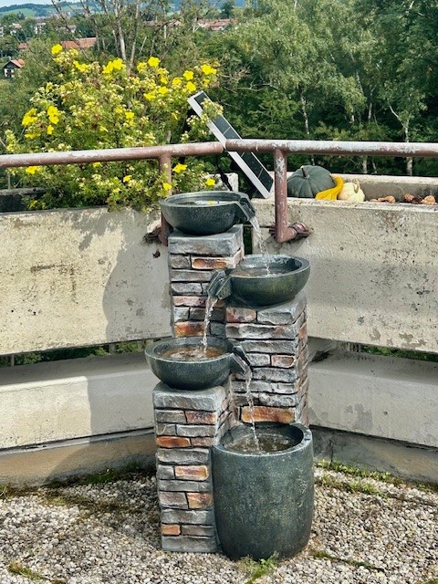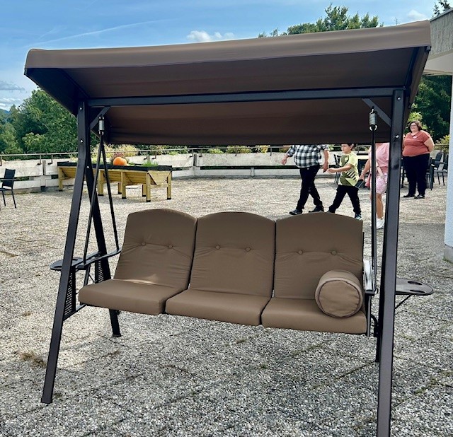 Bisher konnte die Projektgruppe Demenzgarten durch das bürgerschaftliche Engagement von örtlichen Firmen und Vereinen schon ein Insektenhotel, einen für Rollstühle unterfahrbaren Tisch; zwei rollstuhlgerechte Hochbeete und einen Naschgarten aufstellen. Auch große Sonnenschirme zum Schutz der Heimbewohner sind inzwischen vorhanden.Zur Ergänzung des Angebotes fehlen noch Handläufe (u.a. für therapeutische Zwecke), ein Windspiel aus Bambus, ein Solarbrunnen und die seniorengerechte Hollywoodschaukel zum Ausruhen und Entspannen. Diese sollen mit dem beantragten Zuschuss von 2.500,-- € angeschafft werden.