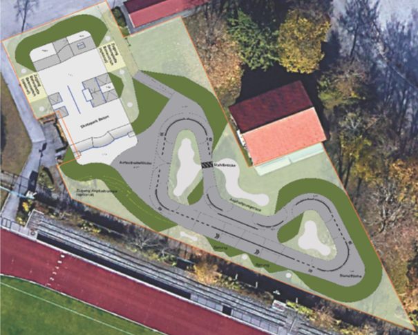 Der aktuell wieder verstärkt aufkommende Trend zu diversen Rollsportarten neben der reinen Skatergruppierung mit einer breiteren Nutzer- und Zielgruppe hat dem Thema neuen Schwung verliehen.Der Gemeinderat hat sich daher für die Umsetzung einer Skate- und Pumptrackanlage im Bereich der gemeindlichen Sportanlage ausgesprochen.