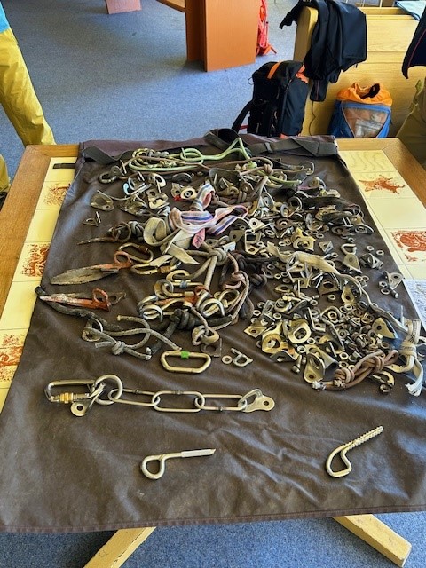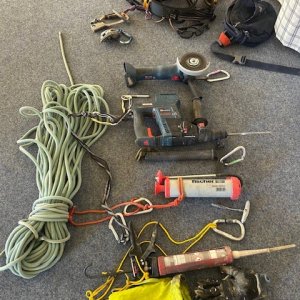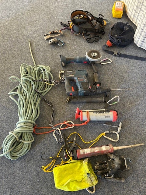 Material zur sicherheitstechnischen Aufwertung der Kletterrouten (Haken, Expressanker, Injektionsmörtel etc.)