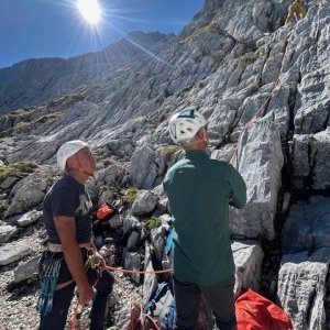 Die Projektgruppe Klettergarten "Radelnde Hexe", bestehend aus mehreren ehrenamtlichen, heimischen Bergführern, befasst sich seit einiger Zeit mit der Sicherheit des Klettergartens im Alpspitzgebiet. Um das Klettergebiet weiterhin zu Schulungs- und Übungszwecken für verschiedene Gruppen nutzen zu können, sollen die Routen sicherheitstechnisch inwertgesetzt werden.